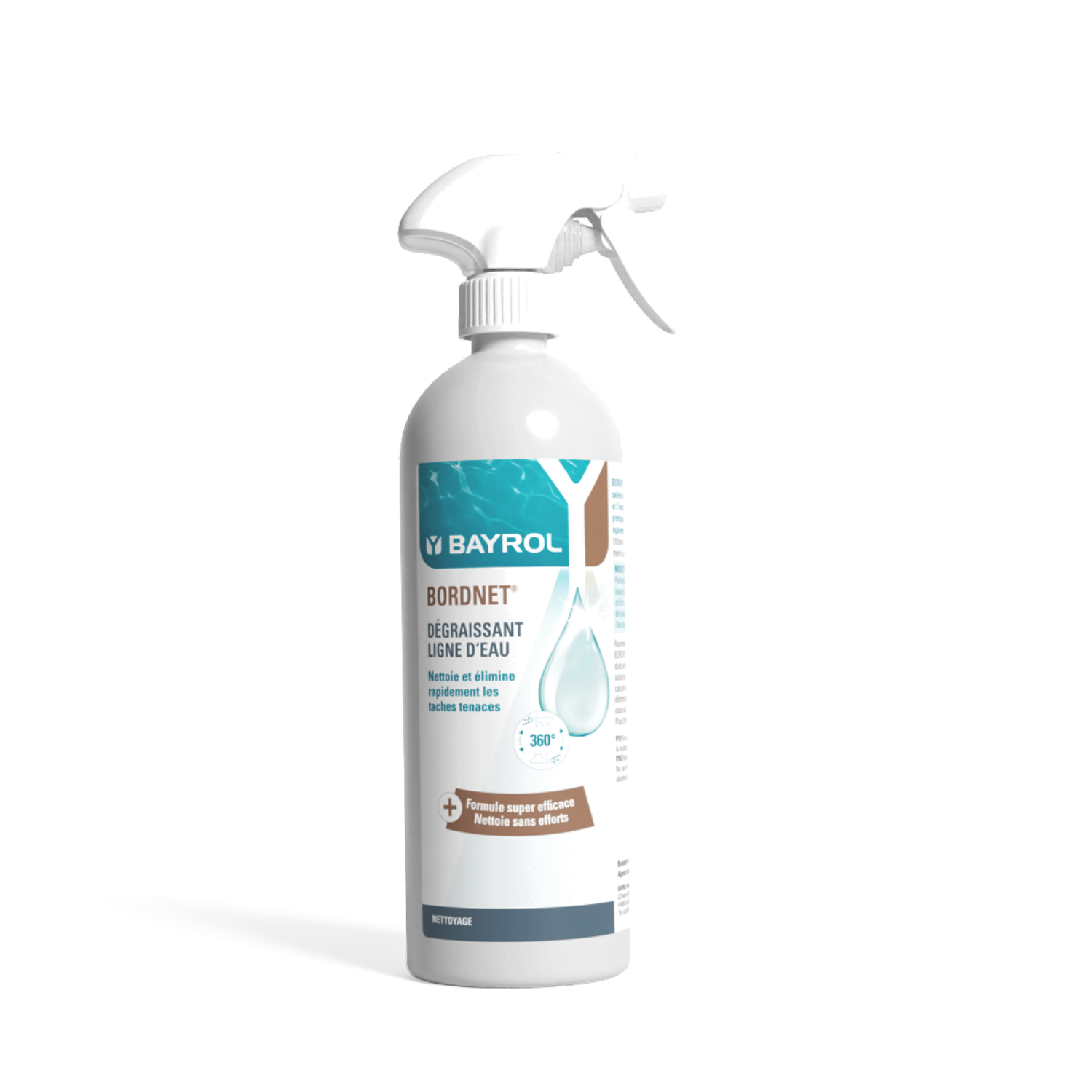 Bordnet in spray pulisce senza rischi tutti i tipi di rivestimento: piastrelle, liner o gusci in poliestere. Inoltre permette di pulire rapidamente anche gli skimmer. Si risciacqua facilmente con l’acqua della piscina.