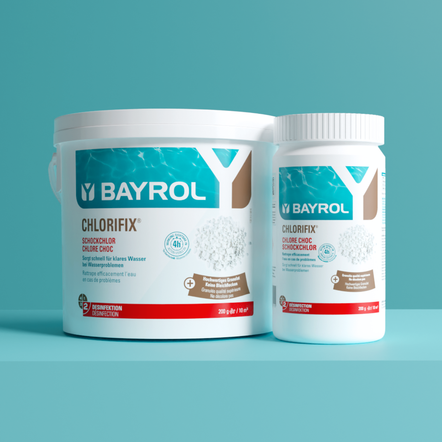 Chlorifix® è il prodotto ideale per una clorazione d'urto grazie alla sua azione rapida e potente. Il granulato di alta qualità si dissolve immediatamente senza lasciare residui e rilascia una grande quantità di cloro attivo.
