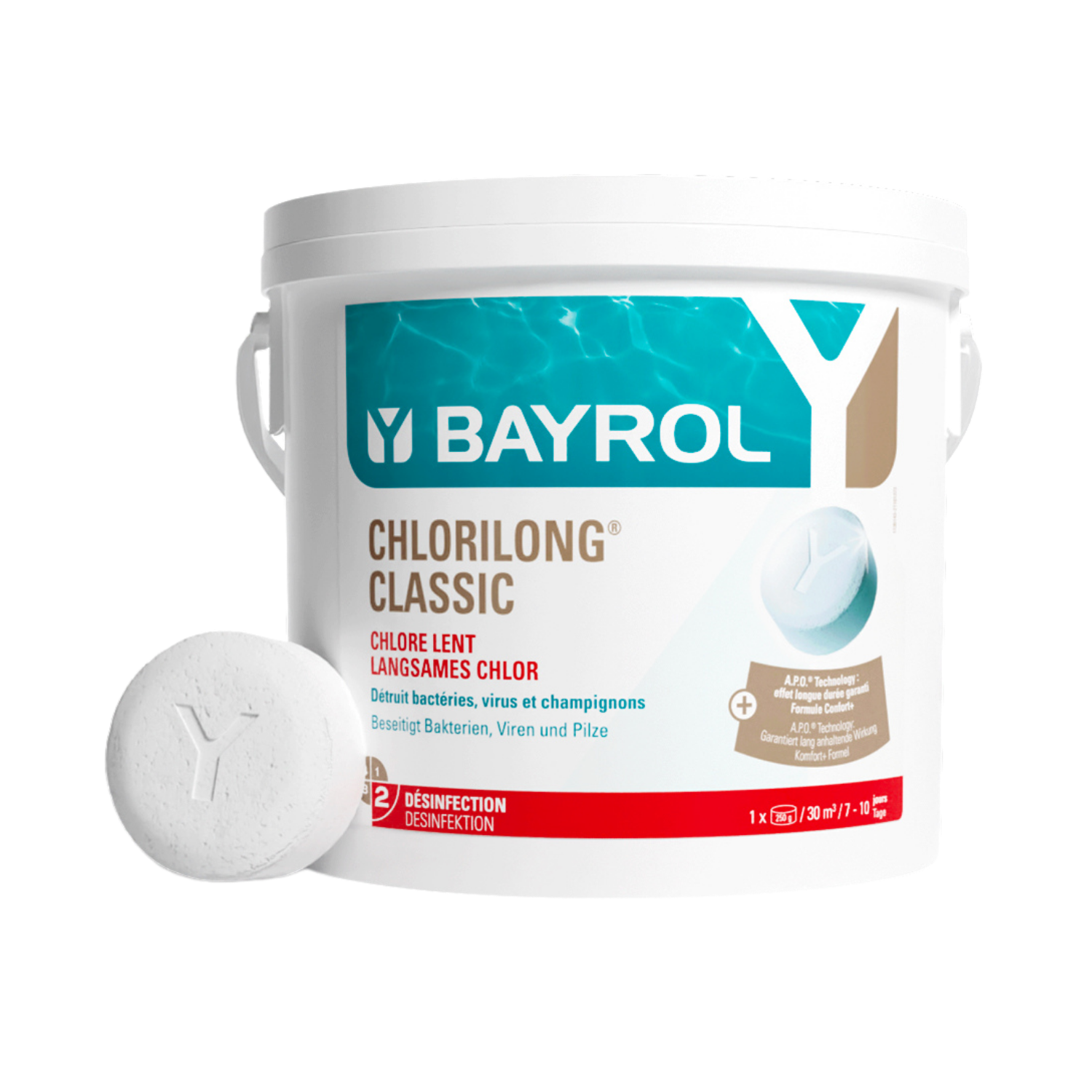 Chlorilong® CLASSIC (precedentemente Chlorilong® 250) è un galet di cloro da 250 g a lenta e regolare dissoluzione per una disinfezione continua della piscina. Questi galet a lenta dissoluzione uniscono l’efficacia di materie prime rigorosamente seleziona