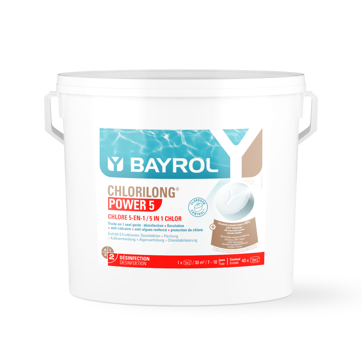 Chlorilong® POWER 5 garantisce disinfezione, prevenzione delle alghe e dei depositi calcarei, flocculazione continua e stabilizzazione del cloro. Galet di altissima qualità, per un rilascio uniforme del cloro e il mantenimento di un livello di disinfettante costante nell’acqua della piscina.