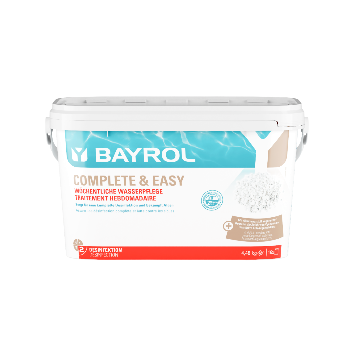 Complete & Easy è un alleato ideale per la cura della piscina. Elimina i batteri, rimuove le impurità e impedisce la crescita delle alghe. La sua formula esclusiva che combina cloro e ossigeno attivo garantisce un’elevata efficacia, consentendo di ottenere un’acqua sana limitando al contempo gli odori di cloro e i rischi di irritazioni. Inoltre, la balneazione è possibile già dopo soli 15 minuti dal trattamento!