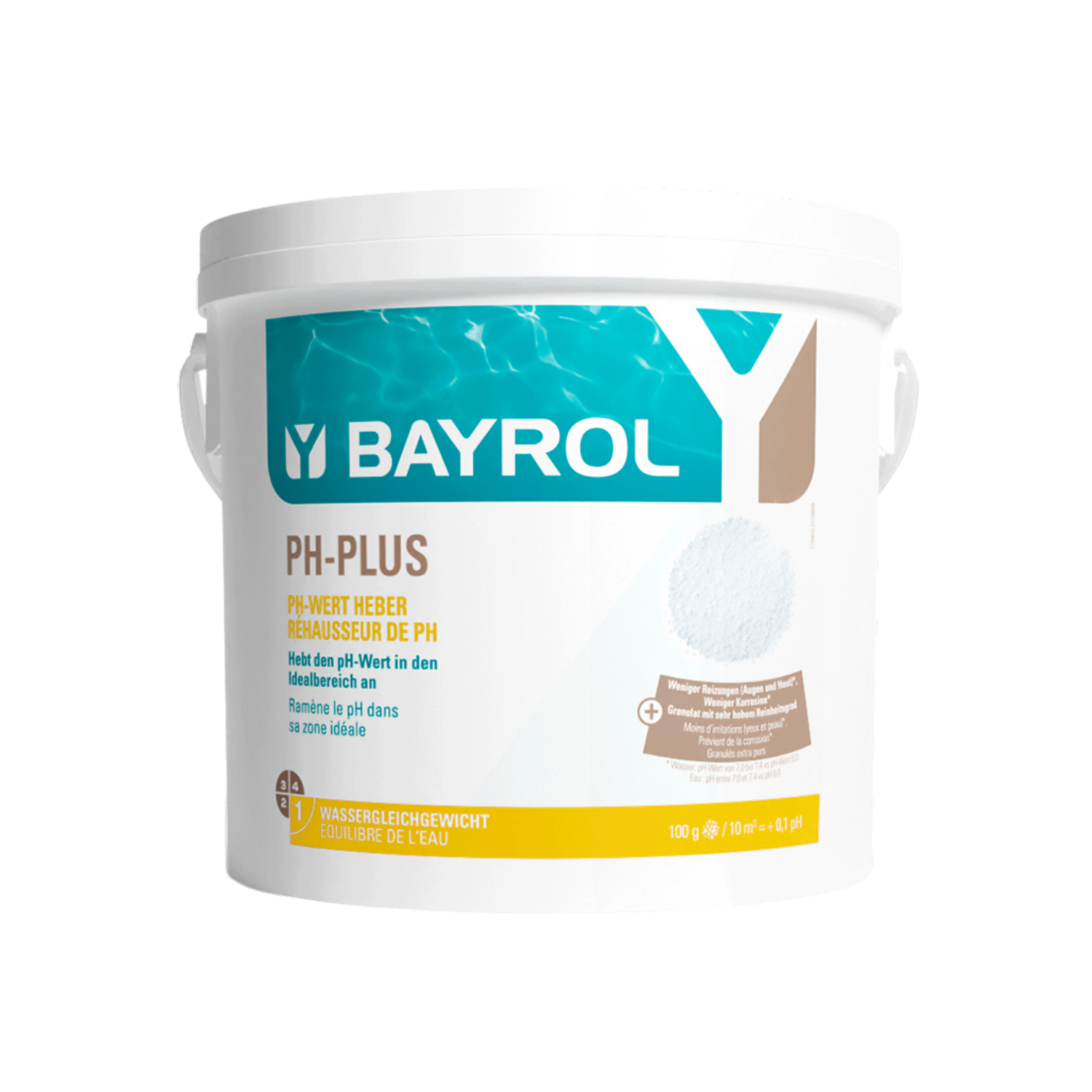 pH-Plus in granuli permette di aumentare il valore del pH dell’acqua della piscina e deve essere utilizzato quando il pH è troppo basso, cioè inferiore a 7,0.